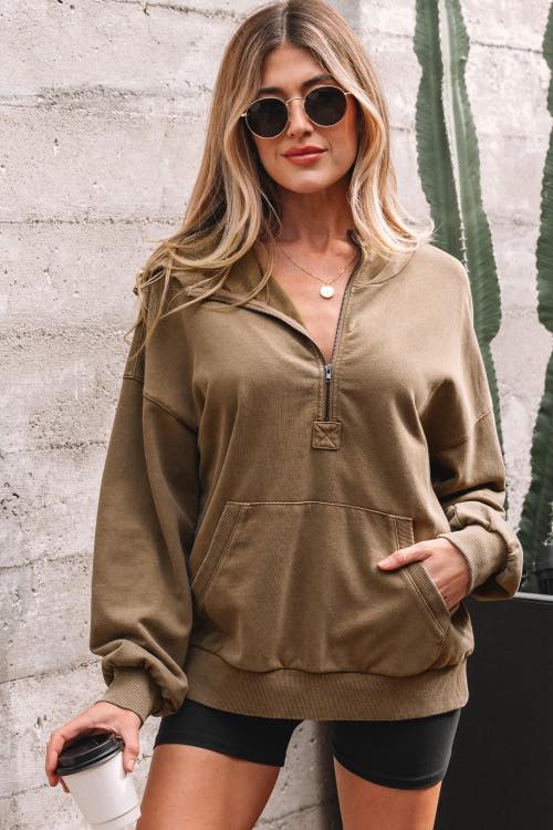 Casual hoodie wish a half zipped front, drop shoulder and pouch pocket detail.